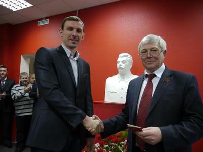 Перед началом Пленума первый секретарь Липецкого ОК КПРФ Н.В. Разворотнев вручил партийные билеты тем, кто недавно вступил в ряды партии. 18 человек официально стали коммунистами у вновь открытого в помещении обкома бюста И.В. Сталину.