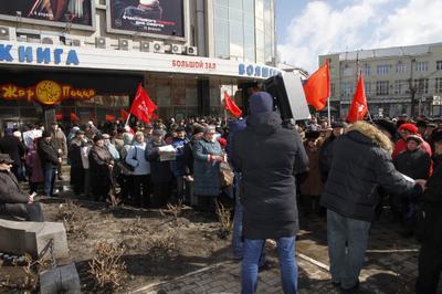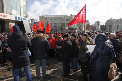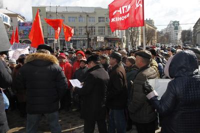 23 марта в ходе Всероссийской акции протеста «Защитим социально-экономические права граждан!» в центре Воронежа прошел многолюдный митинг. В очередной раз коммунисты и сторонники КПРФ, представители трудовых коллективов, общественных организаций, малого бизнеса, обманутые пайщики, экологические активисты вышли на Никитинскую площадь сказать свое твердое «нет» антинародной политике, которую проводит президент В. Путин и его правительство во главе с лидером «Единой России» Д. Медведевым. Народ устал верить лживым обещаниям бездушных чиновников, у которых в отчётах и на телеэкране всё улучшается, а на деле уровень жизни людей падает, проблемы, которые приходится решать для выживания в условиях российского капитализма, становятся всё острее.