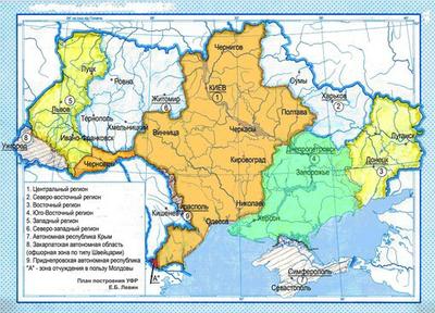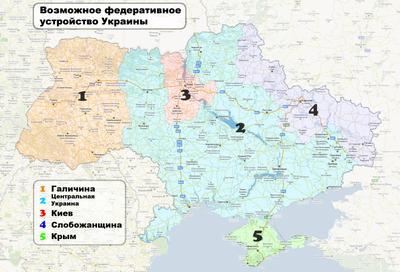 Один из старых проектов федерализации Украины, когда Крым был еще в составе Украины. (реализация такого проекта в теории могла предотвратить гражданскую войну и сохранить реальную территориальную целостность Украины). Ниже еще несколько примеров проектов федерализации.