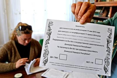 Донецкая и Луганская народные республики были провозглашены в начале апреля. Вскоре после этого было принято решение провести местные референдумы о статусе регионов. В "Донецкой народной республике" вопрос для референдума сформулировали следующим образом: "Поддерживаете ли вы акт о государственной самостоятельности Донецкой народной республики?". Луганские сторонники федерализации вскоре утвердили аналогичный вопрос для голосования: "Поддерживаете ли вы акт о государственной самостоятельности Луганской народной республики?". Референдумы в обеих областях были намечены на 11 мая.