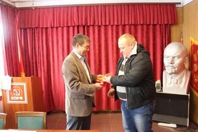 После митинга, вернувшись в помещение областного Комитета, первый секретарь обкома КПРФ Александр Шишкин вручил партийный билет молодому коммунисту Сергею Чарикову.