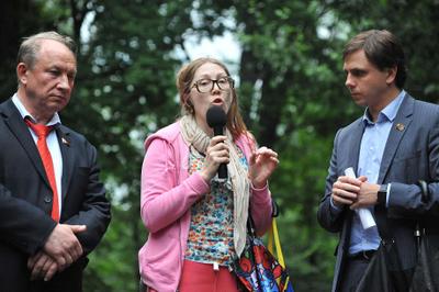Со сцены жители пожаловались на то, что местные чиновники их не слышат, а Совет депутатов района Кузьминки представляет не их интересы, а свои. Помимо всего прочего на Окской улице находится пять организаций и церковь. Но при этом здесь хотят поставить восьмиметровый забор, из-за чего люди не смогут ходить напрямую и придется строить переход. Но это лишь малые из неудобств, которые придется терпеть. Многие из жителей подключились к этому вопросу уже на первом собрании: четырех-шестиполосная дорога, которую планируется строить, — это категория Рязанского проспекта, и они не представляют, как это будет сочетаться с их укладом жизни. В любом случае, как бы не расширяли эту трассу, здесь все равно будет пробка, так как трафик будет огромный, и жителям придется ютиться рядом с оживленной магистралью и дышать машинными выхлопами.