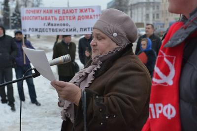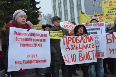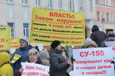 - Сейчас мы остались ни с чем: без жилья и без денег, и без надежды на справедливость! – отметила в своём выступлении Анна Белоцерковская. – Воры гуляют на свободе. 2 800 дольщиков и примерно 15 000 членов их семей рыдают от бессилия, а ивановские чиновники отвечают, что сами виноваты!