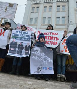 - То, что нас обвиняют в политизации – это просто не прилично! – говорит в своём выступлении дольщик Елена Викторовна. – Украсть деньги у народа, украсть деньги у женщин, украсть деньги у детей – это не политика, это воровство! Но воров у нас не судят в государстве! Чем ты богаче вор, тем меньше тебе дадут сроку, а то и вообще отпустят! Именно такое впечатление создаётся за последние годы!