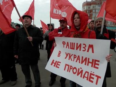 Участники митинга осудили вакханалию, организованную украинскими неонацистами – погромы, преследования инакомыслящих, снос памятников В.И.Ленину, запрет на использование русского языка.