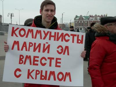 Сегодня в Йошкар-Оле состоялся митинг в поддержку итогов референдума и воссоединения Крыма с Россией. Мероприятие было организовано Марийским Республиканским отделением КПРФ и Йошкар-Олинским горкомом партии.