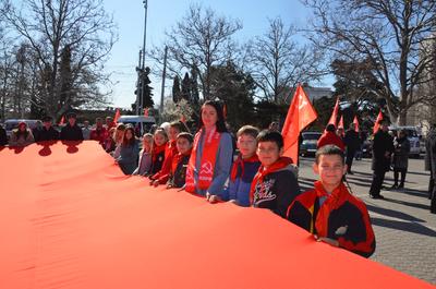На пл. Нахимова состоялся митинг, на котором выступили заместитель Председателя Законодательного Собрания города Севастополя Василий Михайлович Пархоменко, исполняющий обязанности Губернатора города Севастополя Михаил Владимирович Развожаев, секретарь ЦК КПРФ, депутат Госдумы Казбек Куцукович Тайсаев, ветеран Великой Отечественной войны Михаил Степанович Латоха, руководитель фракции КПРФ в Госсовете Крыма Сергей Васильевич Богатыренко, первый секретарь ЦК ЛКСМ РФ Владимир Павлович Исаков.