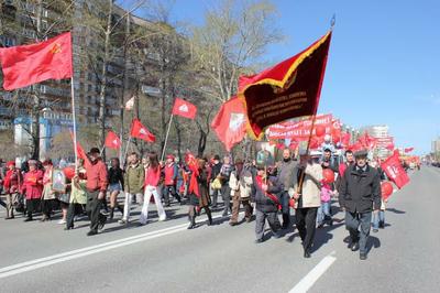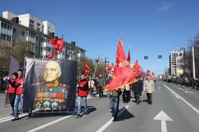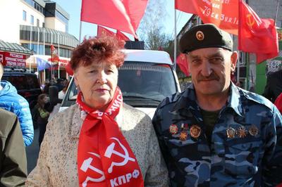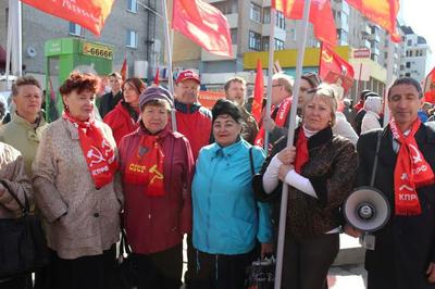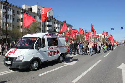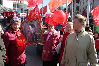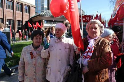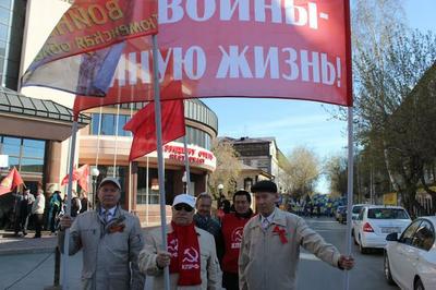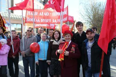 На лицах людей читалась неподдельная радость по случаю праздника. В первых рядах краснознамённой группы шли лидер коммунистов Тюменской области Тамара Казанцева и руководитель фракции КПРФ в Тюменской областной Думе Владимир Чертищев.