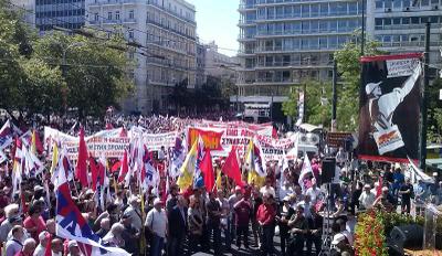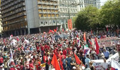 В Афинах, на площадь Синтагма, скандируя лозунги, стянулись силы рабочих профсоюзов, пенсионеров, профсоюзы ремесленников и торговцев, студенческие и женские организации, народные комитеты и комитеты безработных.