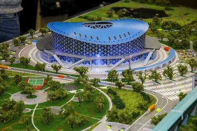 Макет нового здания Ледового дворца спорта, включая транспортные развязки и станцию метро «Спортивная», представлен на выставке в новосибирском «Экспоцентре». 22 мая там начал работу большой VIII Международный Сибирский транспортный форум.