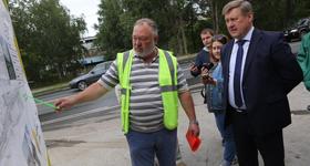 Сегодня, 13 августа, мэр Анатолий Локоть проконтролировал, как идет капитальный ремонт дорог на улице Русской, связывающей Бердское шоссе и кольцо «Шлюз».