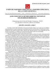 Nosotros, los lнderes de los diecisiete partidos comunistas de las ex repъblicas soviйticas, unidos en la Uniуn de Partidos Comunistas, el PCUS, en este difнcil momento apelamos a todos los partidos comunistas y obreros del mundo con un llamamiento para brindar asistencia integral a nuestros hermanos bielorrusos!