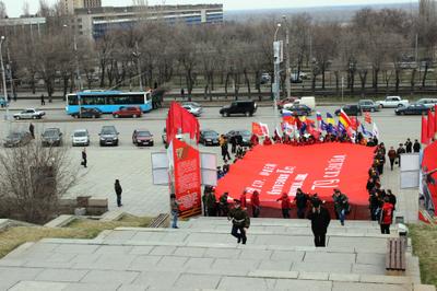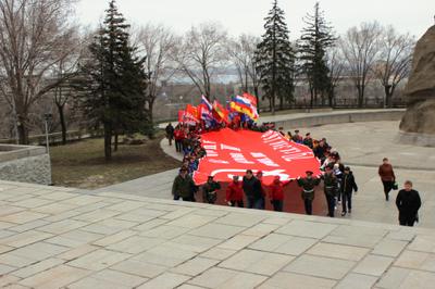 Сегодня, 10 апреля, в городе-герое Волгограде, на главной высоте России состоялась «Эстафета памяти», посвященная 68-й годовщине победы народов СССР в Великой Отечественной войне. Мероприятие проходит в рамках международного общественного проекта «Наша Великая Победа». Накануне на границе с Астраханской областью победный экипаж встречали сталинградские коммунисты.