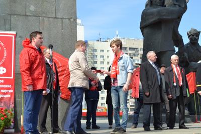 Каждый год на праздник 1 мая вручаются партийные билеты вновь принятым юным коммунистам. Этот год не стал исключением и свои партийные билеты получили совсем молодые ребята.