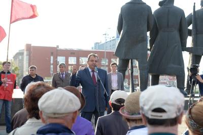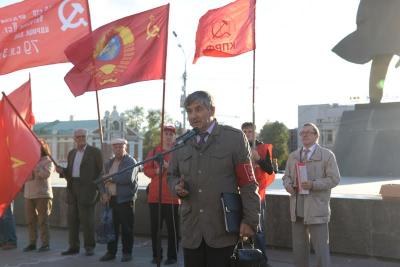 14 сентября площадь Ленина приобрела заметный оттенок красного — митинг коммунистов состоялся именно здесь. Когда до конца выборов остаются считанные дни, многие партийные активисты, их друзья и знакомые находятся «в полях», но и без них на площади Ленина собралось несколько сотен новосибирцев. Люди внимательно слушали открывшего митинг заместителя председателя Законодательного собрания, талантливого оратора Владимира Карпова. Наконец, слово взял заместитель председателя Совета депутатов Новосибирска Ренат Сулейманов — кандидат от КПРФ по 136-му Центральному округу: