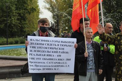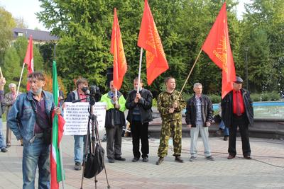 27 сентября в Казани в сквере имени Карима Тинчурина состоялся митинг КПРФ с лозунгами за чистые и честные выборы и против произвола на избирательных участках. Организаторами митинга выступили: Казанский Горком ТРО КПРФ, ТРО ЛКСМ РФ, ВЖС "Надежда России", ТРО "Дети Войны", ТРОО "Союз Советских Офицеров", Левый фронт.