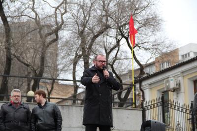 Свое обращение к собравшимся на площади людям он начал со следующих слов: «Уважаемые товарищи! Социально-экономическая ситуация в стране и крае только ухудшается, она не растет и не развивается. Сегодня, когда в стране фактически идет геноцид населения, повышаются налоги, растут цены, повышен пенсионный возраст – это власть делает все для того, чтобы довести население до гражданской войны». Также лидер приморских коммунистов высказал принципиальную позицию партии по вопросам проведения антинародной политики правительства: «Эти негодяи, сидящие в Центризбиркоме, правительстве, на министерских креслах, на мой взгляд, хотят лишь одного – раздробления нашей общей страны – России. Последнее решение Центральной избирательной комиссии, принятое позавчера – не передать депутатский мандат покойного Жореса Алферова бывшему кандидату в Президенты РФ Павлу Грудинину, является очередным тому доказательством. Как можно по надуманному поводу отказаться передавать возможность представлять мнение и интересы людей в российском парламенте человеку, которому 8,5 миллионов граждан России были готовы доверить управление государством?»