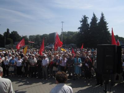 27 июля в 11:00 – 12:40 в Калининграде прошел митинг «Детям войны – достойную жизнь!», организованный КПРФ и поддержанный СР, целью которого было выступить за присвоение официального статуса детям войны. Подобные законы действуют на Украине, в Беларуси и даже в Германии. Но единороссы инициативу КПРФ в ГосДуме пока что успешно глушат и не пропускают. Господа едроссы упорно не хотят поднимать пенсии, а вопрос по детям войны им вообще не понятен.