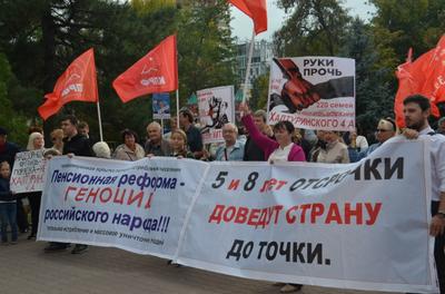 Лозунги: «Нет прощения подлецам, расстрелявшим советскую власть!», «Память священна. Возмездие неотвратимо!», «Нет! – социальному геноциду!», «Позор инициаторам повышения пенсионного возраста!» стали ключевыми в акции, проведенной по инициативе Ростовского ОК и ГК КПРФ.
