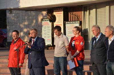 Митинг открыли и вели секретари Ростовского-на-Дону горкома КПРФ - первый секретарь Ростовского обкома комсомола Ирина Кислицына и первый секретарь Железнодорожного РК КПРФ Дмитрий Животов.