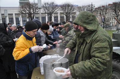 Завершился митинг дружным исполнением «Интернационала», а всех гостей митинга сразу по его окончанию ждали горячий чай и каша из полевой кухни.