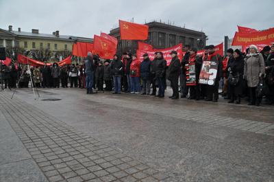 Участникам митинга запомнились выступления секретаря Санкт-Петербургского горкома КПРФ, депутата фракции коммунистов в Законодательном Собрании Санкт-Петербурга Ю.А. Гатчина, руководителя Ленинградского областного отделения Союза Советских офицеров Н.М. Кучерова, секретаря Санкт-Петербургского горкома ЛКСМ РФ А.С. Язова, члена Бюро горкома партии, первого секретаря Центрального райкома КПРФ Н.С. Маркова, рабочего поэта Николая Морозова, исполнительного секретаря городского отделения ВСД «Русский Лад» А.М. Богачева и других товарищей. Выступавшие на митинге говорили о разрушении армии, о невыполненных громких обещаниях власти военнослужащим, о поставившей на грань разорения миллионы россиян так называемой реформе ЖКХ, о разрушенной промышленности и сельском хозяйстве, уничтоженной системе образования. Две резолюции митинга, одна из которых напрямую была посвящена событиям на Украине, были приняты единогласно.