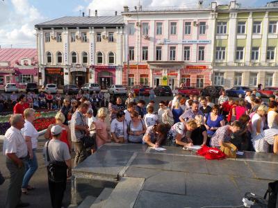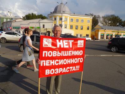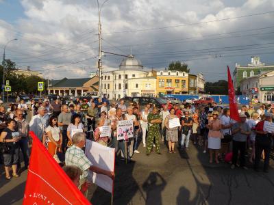 26 июля 2018 г. в рамках Всероссийской акции протеста против повышения пенсионного возраста вологодские коммунисты провели митинг на площади Свободы в областном центре. Среди присутствующих много молодежи и людей среднего возраста.