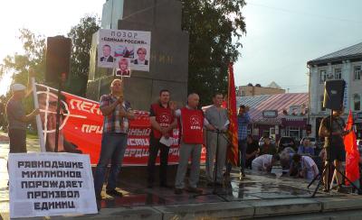 Была прослушана запись выступления в Госдуме Председателя ЦК КПРФ Г.А. Зюганова, подвергшего резкой критике драконовский законопроект. На митинге выступили первый секретарь Вологодского областного комитета КПРФ, руководитель фракции КПРФ в Законодательном Собрании Вологодской области А.Н. Морозов, первый секретарь Вологодского горкома КПРФ О.И. Савельев, коммунисты Н.А. Жаравин, С. Городишенин, вологжане Э.В. Беляева, Л. М. Эскин, представители медицинских учреждений, обманутые дольщики. Митингующие дружно скандировали: «Позор «Единой России!», «Нет повышению пенсионного возраста!»