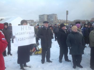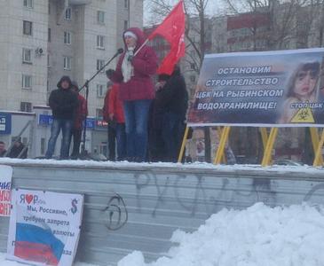 Митинг в городе Череповце Вологодской области против строительства целлюлозного комбината на берегу Рыбинского водохранилища, политики правительства Вологодской области и Российской Федерации