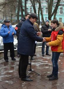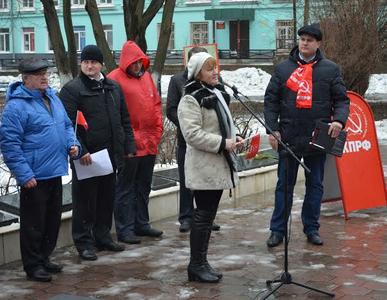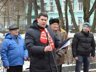 Резолюцию митинга, посвящённого празднованию 96-ой годовщины со дня создания Советской Армии и Военно-Морского Флота зачитал член обкома партии, депутат Заокского районного и поселкового Собраний Андрей Козельский. Кроме того, секретарь обкома КПРФ, депутат облдумы Алексей Лебедев зачитал и предложил принять ещё один документ о ситуации на Украине.