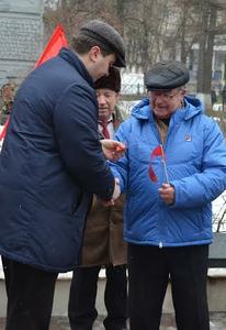 Впрочем, начался митинг на торжественной ноте: прозвучал гимн СССР, а затем член ЦК КПРФ, второй секретарь обкома партии, депутат Госдумы Олег Лебедев вручил партийные билеты двум молодым коммунистам Центрального и Советского местных отделений г.Тулы.