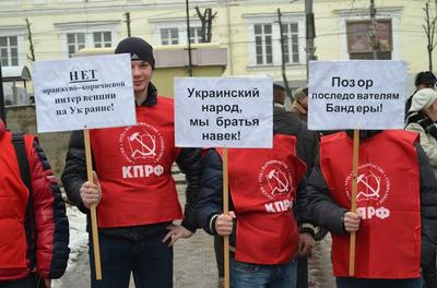 У туляков, собравшихся в полдень 23 февраля в сквере Коммунаров на митинг, посвящённый 96-й годовщине создания Красной Армии, настроение было, скорее, тревожное, чем праздничное. Причина ясна – фашистский переворот на Украине и необъявленная, но уже развязанная бандеровцами война всему, что связывает эту страну с Россией. Молодые коммунисты держали в руках лозунги: «Позор последователям Бандеры», «Украинский народ, мы братья навек», «НЕТ оранжево-коричневой интервенции на Украине!»