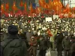 | Упоминаний о праздновании 93-й годовщины Великой Октябрьской Социалистической Революции на федеральном телевидении было крайне мало. Полноценные телесюжеты выпустили только телеканалы «Россия» и НТВ. Тональность многих материалов можно назвать ехидно-ироничной. Например, присутствовали такие фразы, как: «Зюганов немножечко припоздал... но тем не менее встал, естественно, во главу колонны, и он сказал, что праздник морально ничуть не устарел», «здесь какие-то пока только музыкальные изыски [о концерте на митинге]» и т.п. Особую роль в этих телесюжетах играет цифра – численность участников демонстрации. На эту тему на Рен-ТВ разгорелась даже целая дискуссия корреспондента с самим собой: «Конечно не 50 тысяч, как коммунисты обещали, а по нашим подсчётам примерно 3 тысячи, ну, или 3,5 тысячи максимум. Ну, коммунисты, как по нашему опыту, от года в год всё-таки завышают немножечко свои цифры, но пришло только вот, как мы успели увидеть, только 3 тысячи человек». «Первый» канал также указал два разных числа: «по собственным подсчётам Компартии» 50 тысяч человек и по данным ГУВД – 5 тысяч. Телеканал «Россия», помимо подробного обстоятельного и благожелательного (хотя и не лишённого некоторого ехидства) репортажа о московском митинге, дал ещё также пару кратких сообщений о шествиях коммунистов в других регионах России. Здесь необходимо отметить два момента. Во-первых, тележурналистов привлекают яркие и нестандартные акции, такие как раздача листовок красноармейцами «в будёновках и на роликах» (прошедшая 7 ноября в Ростове). Во-вторых, коммунистам следует не допускать ситуаций, при которых у журналистов возникают впечатления наподобие такого: «В Воронеже они требовали улучшения уровня жизни, но как-то не особо настойчиво». На НТВ вышли только два кратких сюжета о митинге коммунистов, причём во втором из них указана минимальная среди прозвучавших с телеэкрана численность митингующих – 3 тысячи человек. ТВЦ приводит цифру в 5 тысяч и, утверждая, что «среди них большая часть были пенсионеры», противоречит телеканалу «Россия», который подчеркнул: «только по ленинско-сталинскому призыву в ряды КПРФ вступили 25 тысяч новичков. Эту молодую кровь партии сегодня было видно во всех городах». |