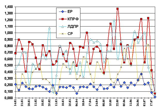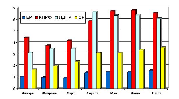 ЛДПР | 3,10 | 3,43 | 3,45 | 6,65 | 6,35 | 6,38 | 6,08 | 26,88 |