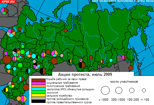 За июль 2009 года в тех или иных акциях выражения народного протеста приняло участие около 15 тысяч человек. Выступления охватили 42 региона России.