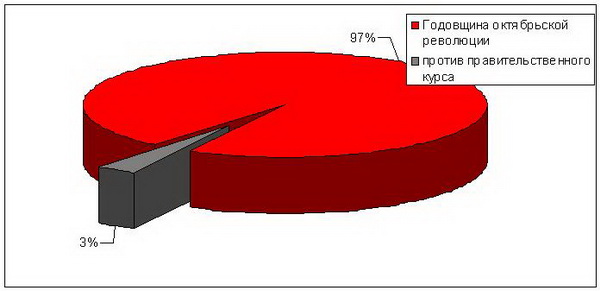 Из рассматриваемых регионов везде, кроме Ханты-Мансийского АО и Нижегородской области, были проведены протестные мероприятия в рамках празднования 93-й годовщины Великой