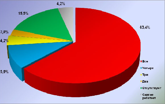 Данные исследования показывают, что полностью с поставленной задачей справились 45 из 71 (63,4%) региональных Интернет-ресурсов.