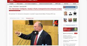 Выступление Г.А. Зюганова в Государственной Думе своевременно на своих страницах в ленте новостей разместило 53 региональных сайта. Это 67,9% от всех функционирующих региональных интернет-ресурсов.