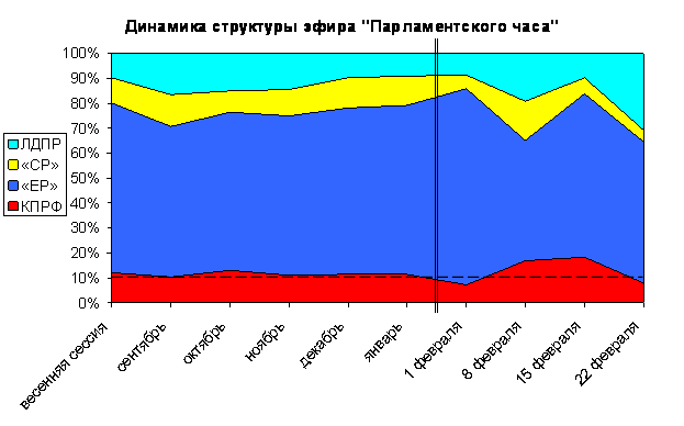 Доля эфира, предоставленного передачей «Парламентский час» каждой из фракций, менялась следующим образом (График 3):