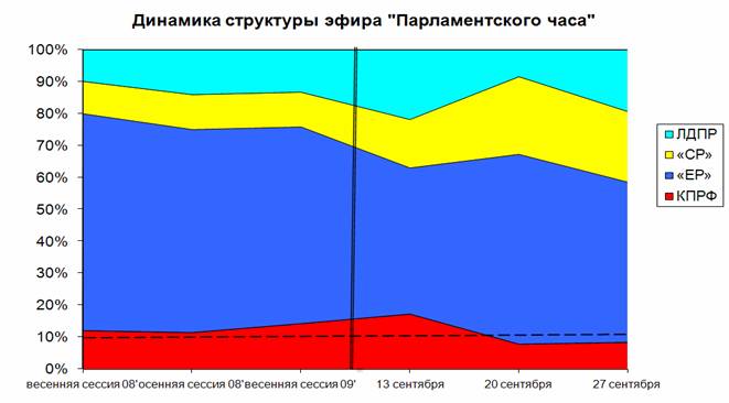 Доля эфира, предоставленного передачей «Парламентский час» каждой из фракций, менялась следующим образом (График 3):