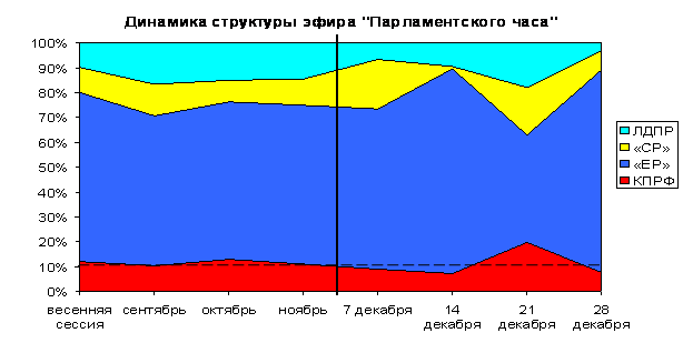 Доля эфира, предоставленного передачей «Парламентский час» каждой из фракций, менялась с января по декабрь следующим образом (График 3):