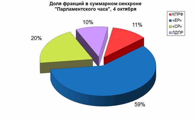 Доля эфира, предоставленного передачей «Парламентский час» каждой из фракций, менялась следующим образом (График 3):
