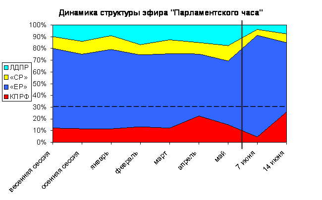 Доля эфира, предоставленного передачей «Парламентский час» каждой из фракций, менялась следующим образом (График 3):