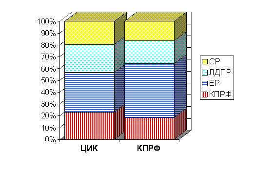 - Незначительные различия между данными ЦИК и КПРФ по трём партиям и двоекратное расхождение по «Единой России» свидетельствует об ангажированности методики расчётов Центризбиркома в пользу партии власти – «ЕР».
