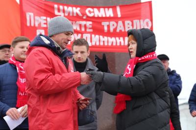 А над митингом, с трибуны памятника В.И.Ленину взывал транспорант: «ЦИК и СМИ! Прекратите травлю Грудинина».