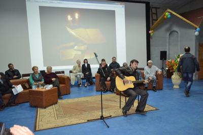 Уже ближе к вечеру в главном зале здания МБУ ПК и О «Родина», была устроена литературная гостиная, с участием прибывших писателей и поэтов Донбасса. Также на встречу были приглашены члены литературного объединения писатели и поэты Талдомского района, гости из Александра Невского монастыря, во главе с игуменьей Тамарой, руководитель районного литературного объединения им. Романова, Русакова Г.А., ученики школ и все желающие, неравнодушные, к трагедии братской страны, люди.