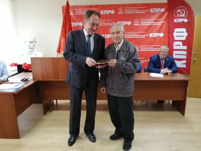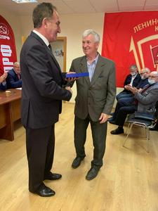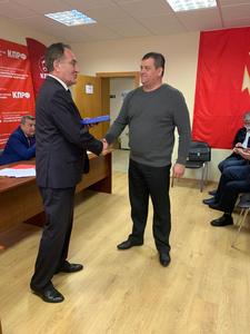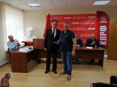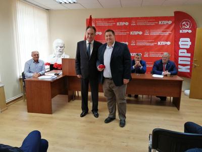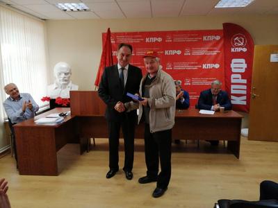 В конце Совещания первый секретарь МК КПРФ Николай Васильев вручил партийный билет новому члену КПРФ, а также по традиции поздравил от МК КПРФ с днями рождения секретарей городских организаций Подмосковья.