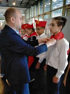 Красногалстучная дружина выстроилась на первом этаже музея. Под бой барабанов было внесено знамя пионерской дружины и началась торжественная линейка. Пионерские галстуки новому поколению пионеров повязали почетные гости: секретарь МК КПРФ, Председатель Комитета Мособлдумы по местному самоуправлению Наумов А.А.; заместитель председателя Подольского Горсовета Никитас Т.Е.; депутат Подольского Горсовета Корольков А.А.; одна из основателей «Союза детских организаций Подольска» Романова Т. И.; член бюро Подольского ГК КПРФ Андреев Н.Н.; член президиума Подольского городского отделения ВЖС «Надежда России» Грузова Н.В.