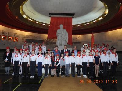 - Дорогие ребята! Сегодня, в легендарном месте - в «Горках Ленинских», где жил и работа основатель Советского государства В.И. Ленин, вы приняли клятву на верность нашей любимой Родине, на продолжение лучших традиций старшего поколения. В этом году мы отмечаем 150 лет со дня рождения В.И. Ленина и 75 лет Победы советского народа в Великой Отечественной войне и 75 окончания Второй Мировой войны. В годы той самой страшной в истории человечества войны сложили головы 27 миллионов лучших сынов и дочерей Великой советской державы. За свободу нашей Отчизны вместе со взрослыми сражались и пионеры великой Советской страны. Имена пионеров-героев, жизни которых оборвали фашистские пули - Зины Портновой и Лёни Голикова, Марата Казея и Саши Чекалина - будут жить вечно в памяти народной. Вы теперь гордо будете носить на груди красный галстук, а это частичка – Знамени Победы! В этом году, из-за пандемии коронавируса, мы не смогли провести приём в пионеры на Красной площади, но я уверен, что эта напасть пройдёт, и мы обязательно в следующем году, как и в предыдущие годы проведём Всероссийскую торжественную линейку на Красной площади.
