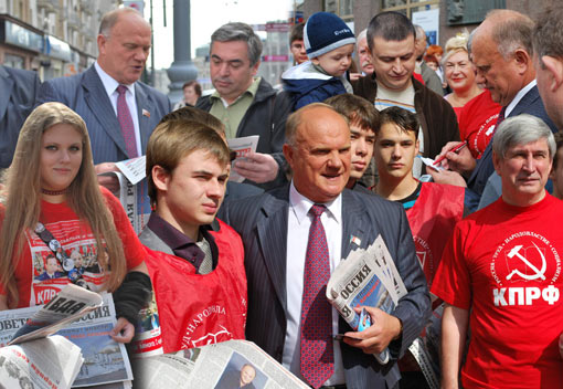 Московские выборы-2009: «Посмотрите правде в глаза!». Г.А.Зюганов раздавал москвичам газеты на акции "Красные в городе"